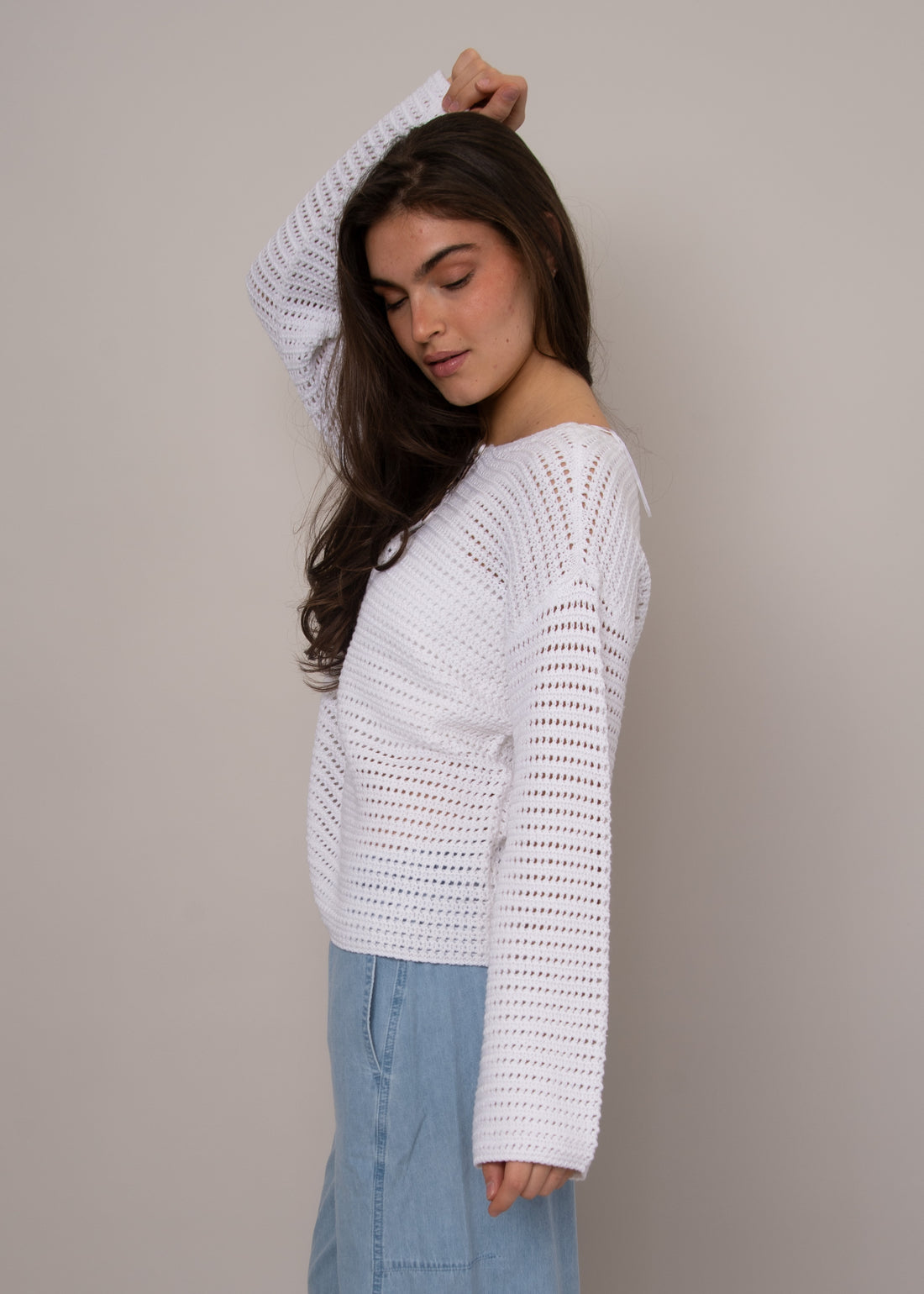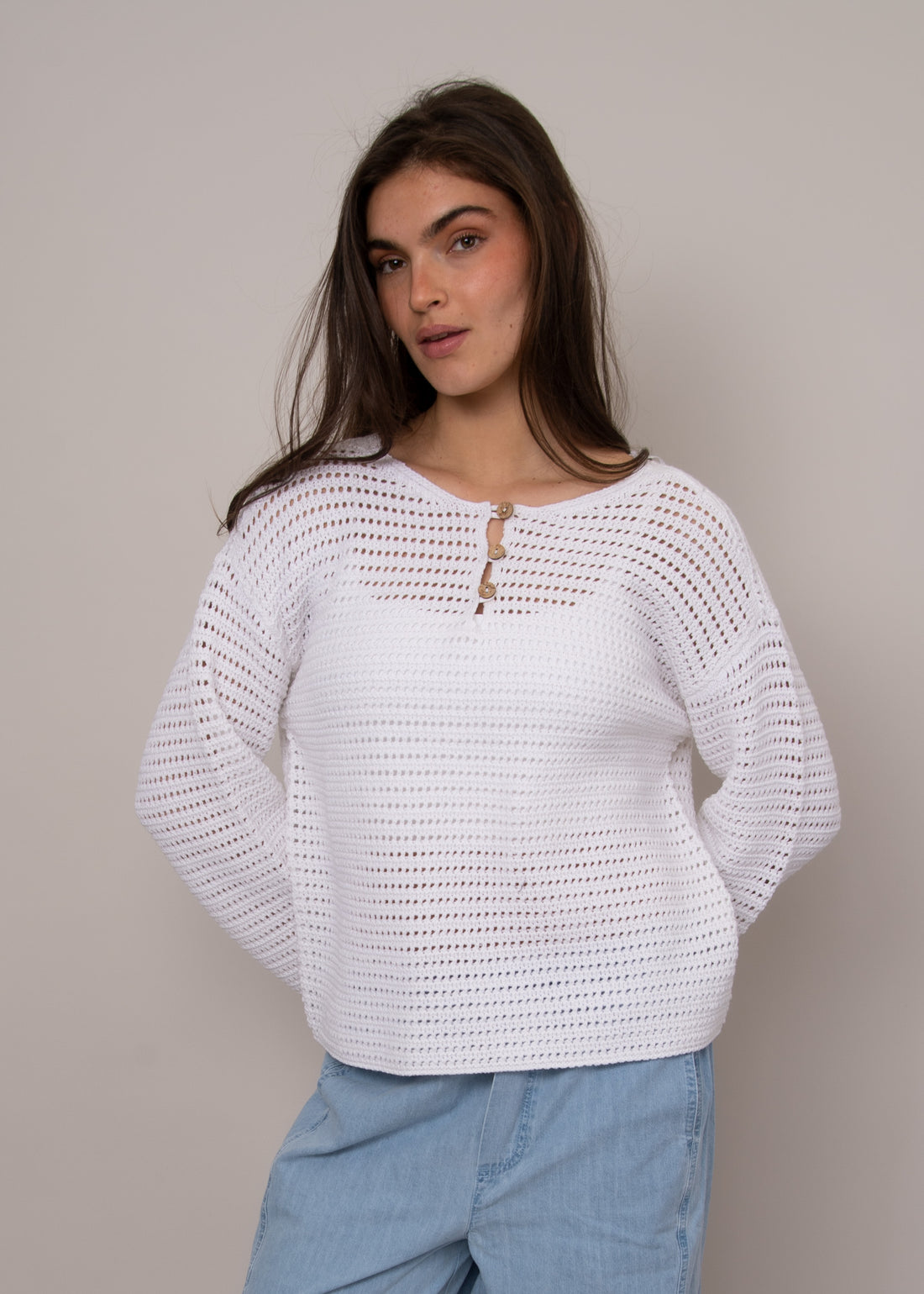 MOANA LONG SLEEVE HENLEY NECK PULL-OVER-WHITE